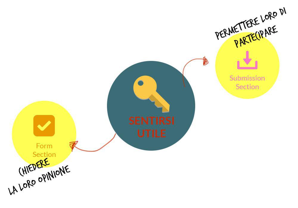 - Sezione del Modulo: ideale per raccogliere le idee direttamente alla fonte. Quindi puoi immaginare di offrire un modulo per ogni problema riscontrato che richiede il parere di un vasto pubblico (ambiente di lavoro, qualità della mensa, tutto è immaginabile a seconda del tipo di attività).