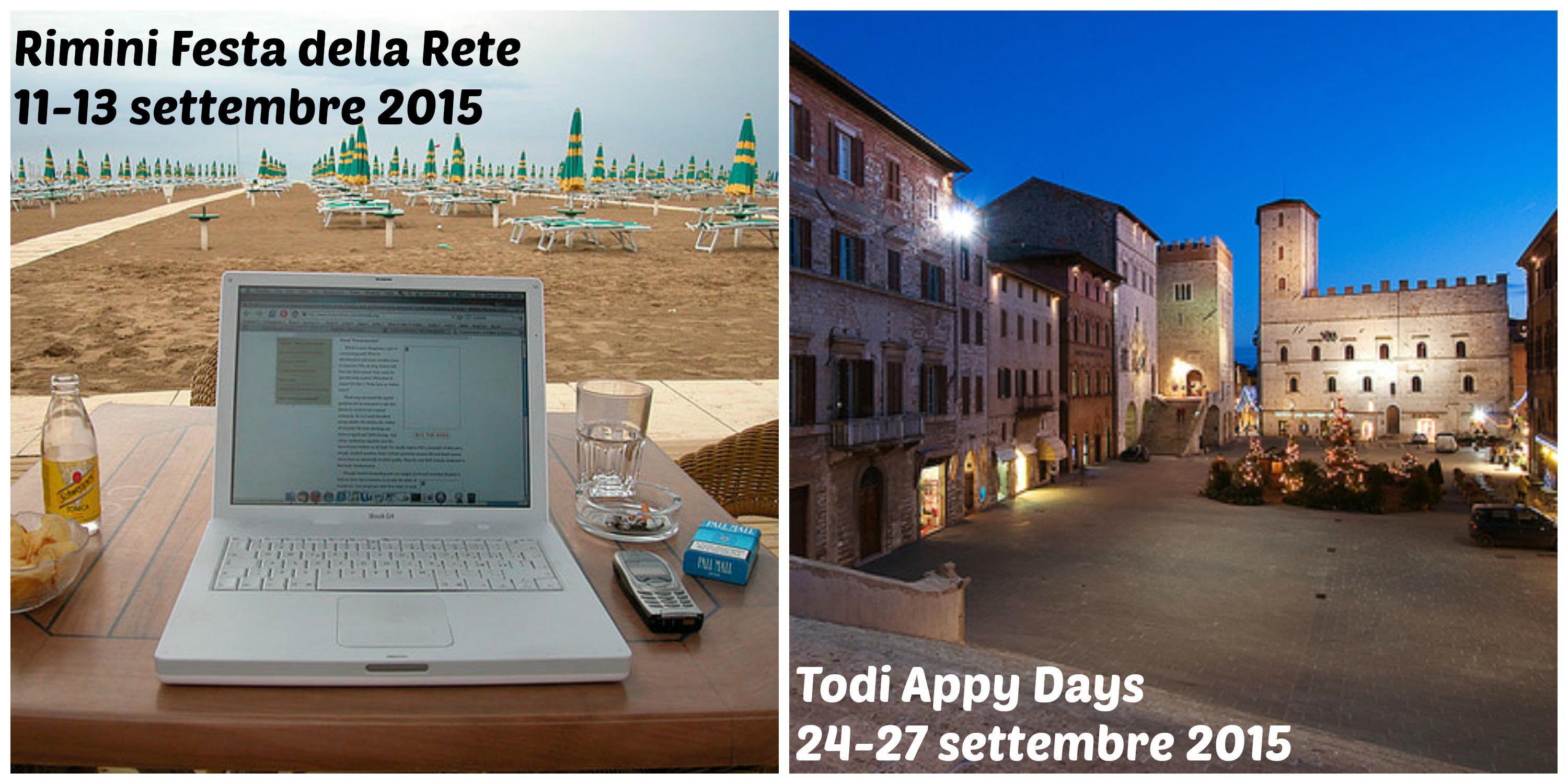 Ti consiglio di scendere poco più a sud, tra le colline umbre e unire l'utile al dilettevole, per un weekend di relax ma anche di lavoro, il Todi Appy Day che si svolge tra il 24 ed il 27 settembre. Si tratta dell'International App Festival, che ha come obiettivo esplorare la rivoluzione continua del mobile con professionisti ed esperti del settore, ma anche alcune scuole ed università. Networking e workshop caratterizzeranno le giornate. Gli speaker saranno circa 200 e verranno trattati i seguenti temi: entertainment, travel, food, kids & edutainment, health & fitness, music, photo & video, gaming, finance & banking, wearable & iot, utility & social, mobile commerce, digital & information, automotive & fashion, no profit.
