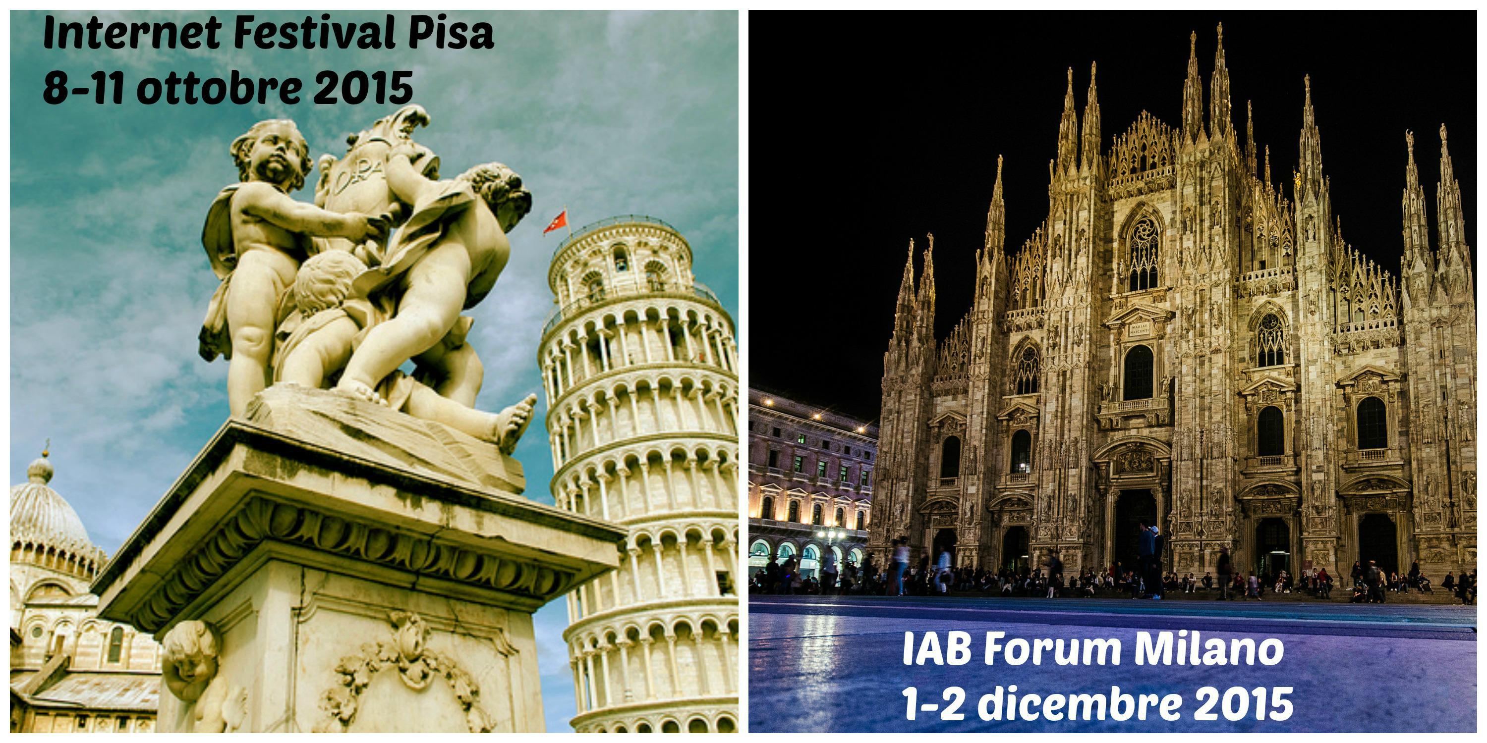 Il clima è ancora mite e potrebbe essere interessante approfittare degli ultimi sprazzi di sole con un bicchiere di Chianti sotto la torre pendente. A Pisa dall'8 all'11 ottobre si svolge l'Internet Festival . Alla sua quinta edizione la manifestazione è in continua crescita ed anima l'intera città con una ventina di location. Ospite della manifestazione anche l'evento .itCup Registro (organizzata dal gruppo Registro, l'anagrafe dei domini internet), che ha lo scopo di presentare 10 startup dalle idee più originali e metterle in contatto con investitori che cercano idee innovative.