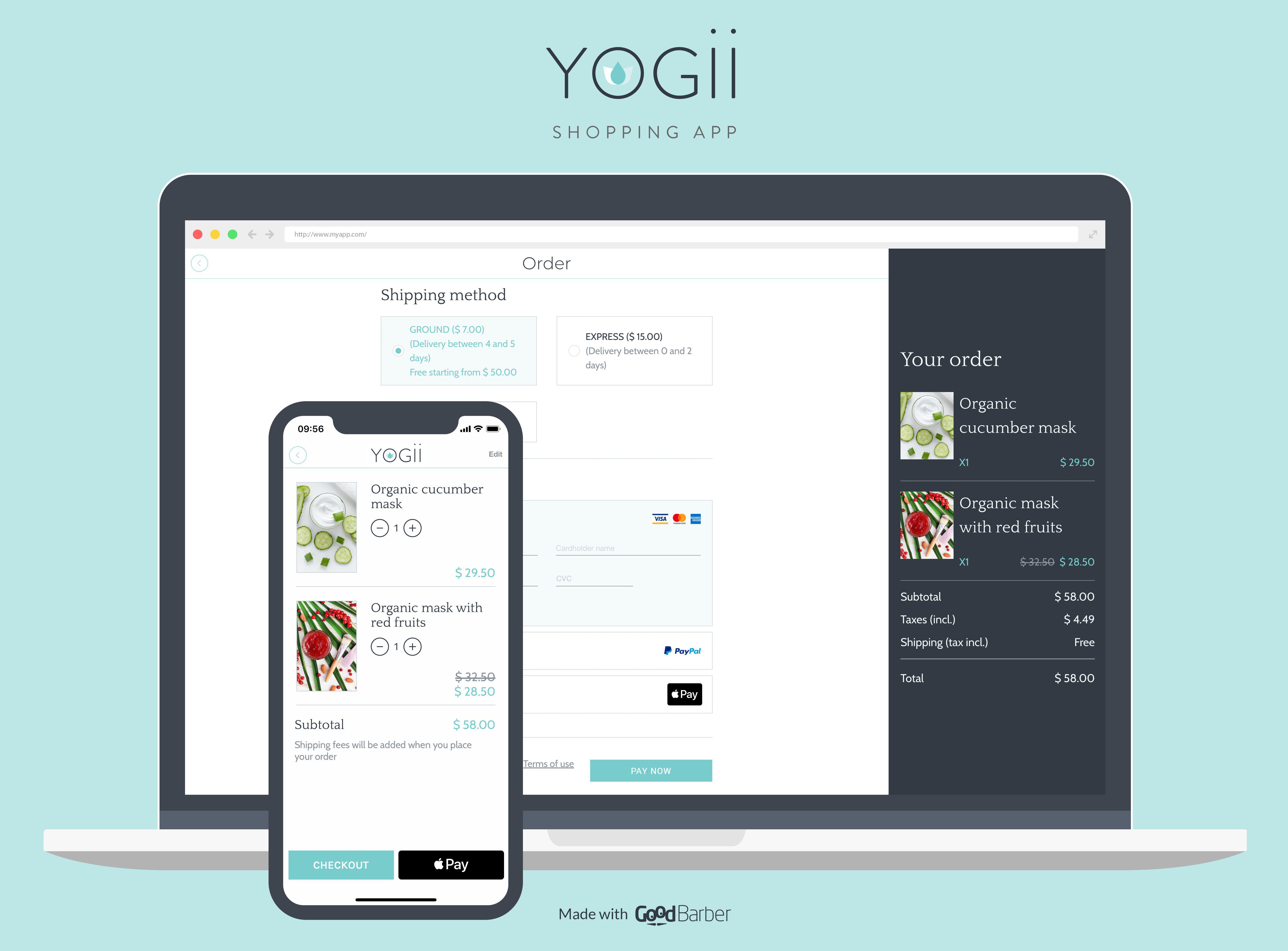 Con le Shopping App di GoodBarber avrai a disposizione un'ampia scelta di bellissimi temi per creare un'esperienza di shopping elegante e intuitiva. Con la nostra modalità di anteprima, puoi visualizzare facilmente tutti i passaggi dal lato dell'utente. Inoltre, i tuoi clienti possono acquistare i tuoi prodotti tramite Apple Pay, con carta di credito o PayPal.
