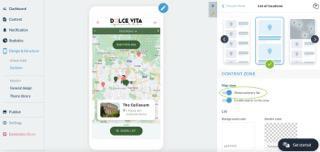 Questo modello consente agli utenti di navigare in modo diverso all'interno della sezione della mappa. Quando passano da una posizione all'altra, la mappa viene centrata sul punto per fornire un maggiore contesto. Nella parte inferiore della schermata della mappa viene visualizzato un cursore che fornisce ulteriori informazioni sul punto selezionato. Per accedere ai dettagli della località, è sufficiente fare clic sul cursore.