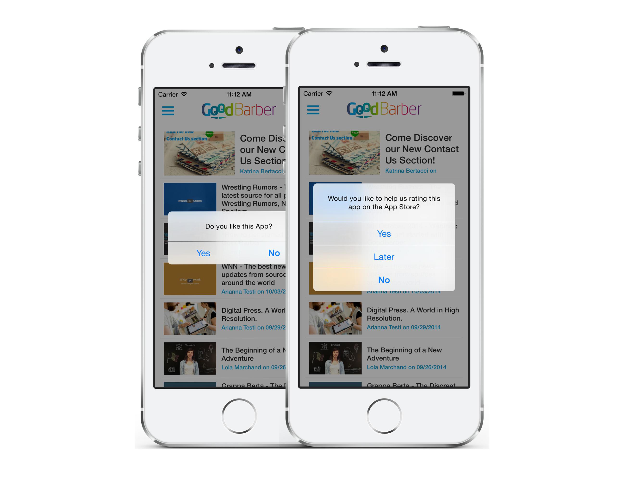 La prima schermata chiede ai vostri utenti se sono soddisfatti dell’applicazione.