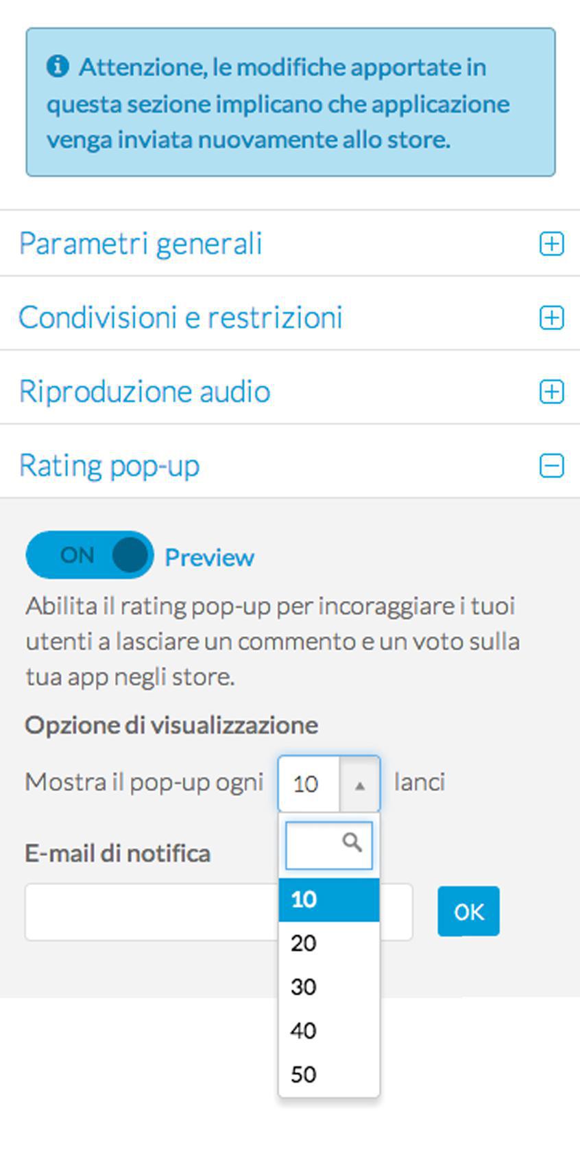 Per attivare questa nuova feature, dovete andare al menu Design del vostro back office, e poi passare al menu sulla destra, alla voce “Opzioni > Rating pop-up”.
