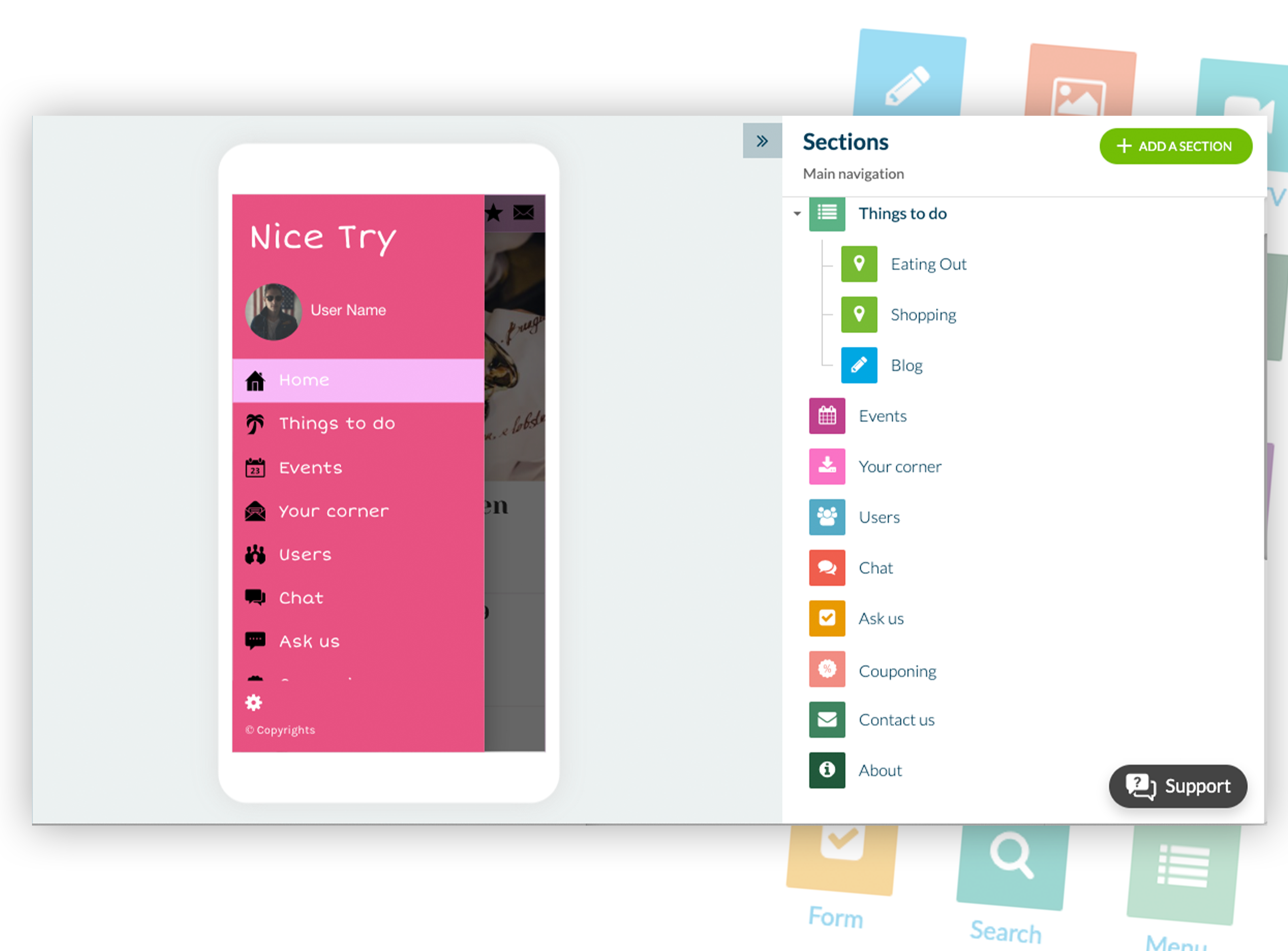Quando ci pensi, la struttura di un'app GoodBarber è abbastanza facile da capire. Essa è fatta di sezioni, ed ogni sezione ha uno scopo dedicato. Esistono circa 100 tipi di sezioni che puoi utilizzare per creare la tua app. È importante capire quale tipo di sezione è meglio utilizzare.