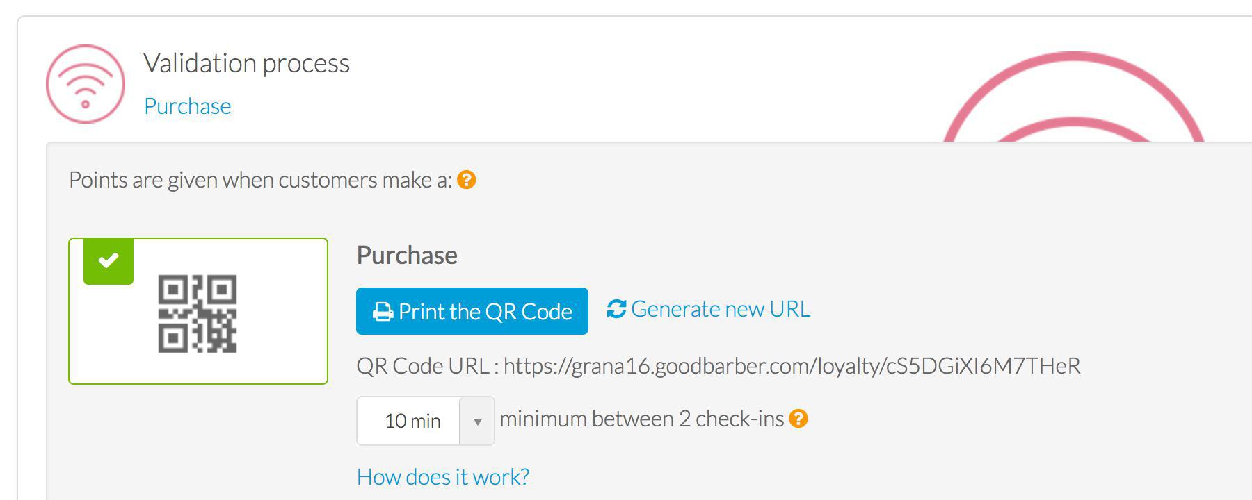 Se sei un vecchio utente e desideri applicare questa nuova misura al tuo codice QR, devi andare nel tuo back office in: Business > La carta > Processo di validazione > Acquista e genera un nuovo URL per il tuo codice QR.