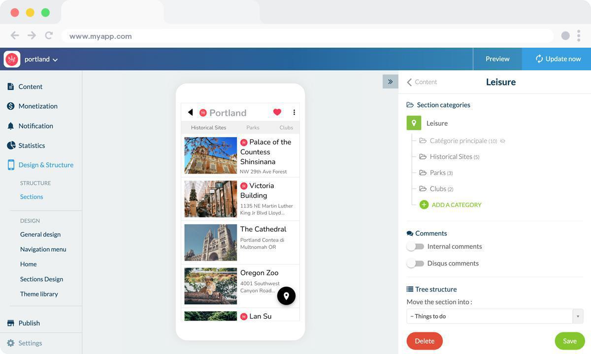 4. Aggiungi i tuoi contenuti alla tua app turistica