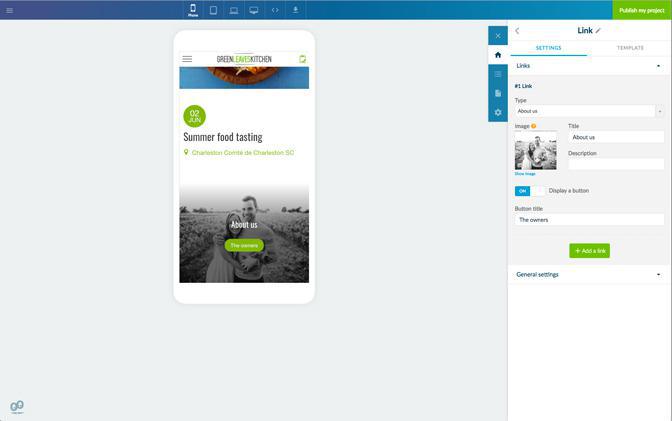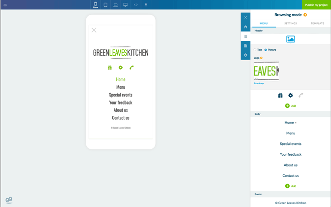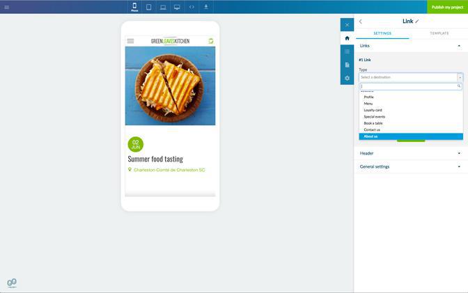 - In questo caso abbiamo utilizzato la sezione Articoli mCMS per far visualizzare il menù del ristorante. Dopo di che abbiamo personalizzato il template della lista degli articoli, scegliendo una visualizzazione a schermo intero (template 8).