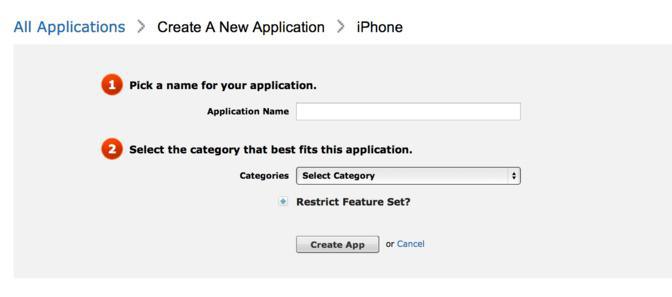 Inserite il nome della vostra app e selezionate la categoria che più le si avvicina. Infine cliccate su "Create App".