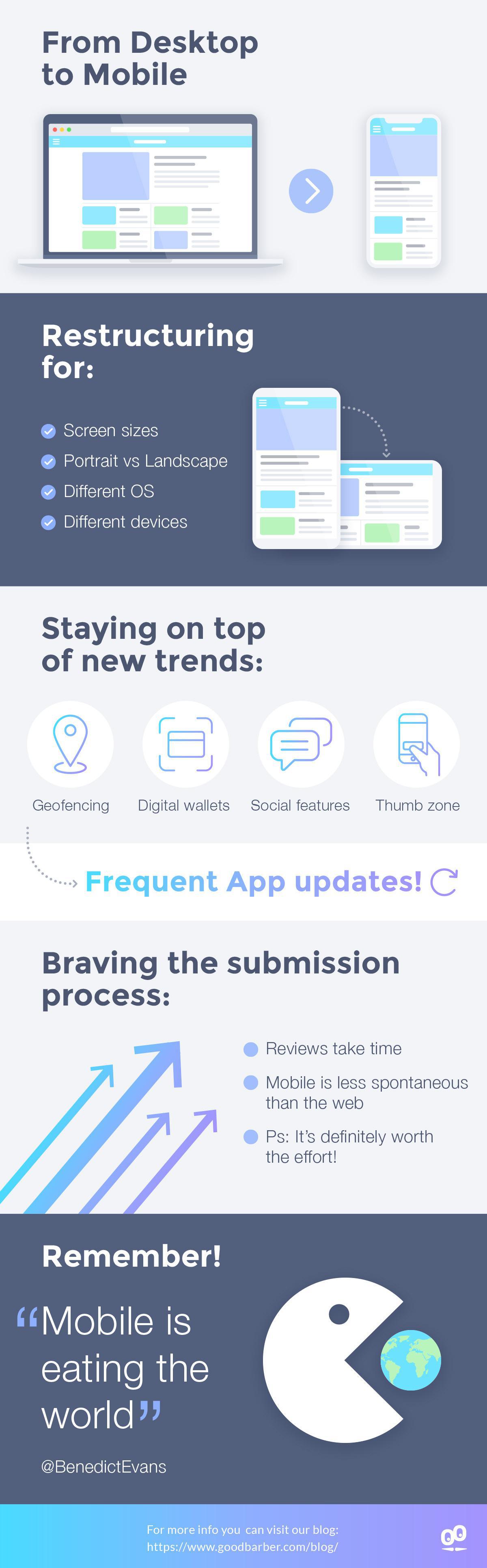 Ecco che allora oggi ti proponiamo una semplice e chiare infografia che raccoglie tutti i punti fondamentali per completare con successo il passaggio da Desktop a Mobile.