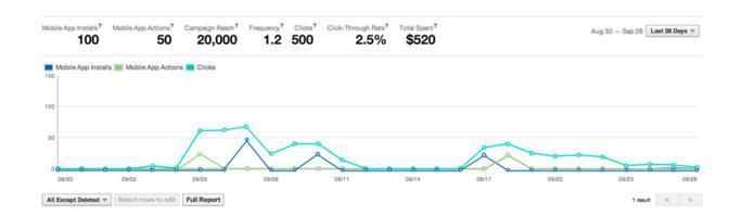 Attraverso Ads Manager o App Dashboard puoi vedere i dati e il numero di download, il costo della campagna, il costo per azione, ecc..