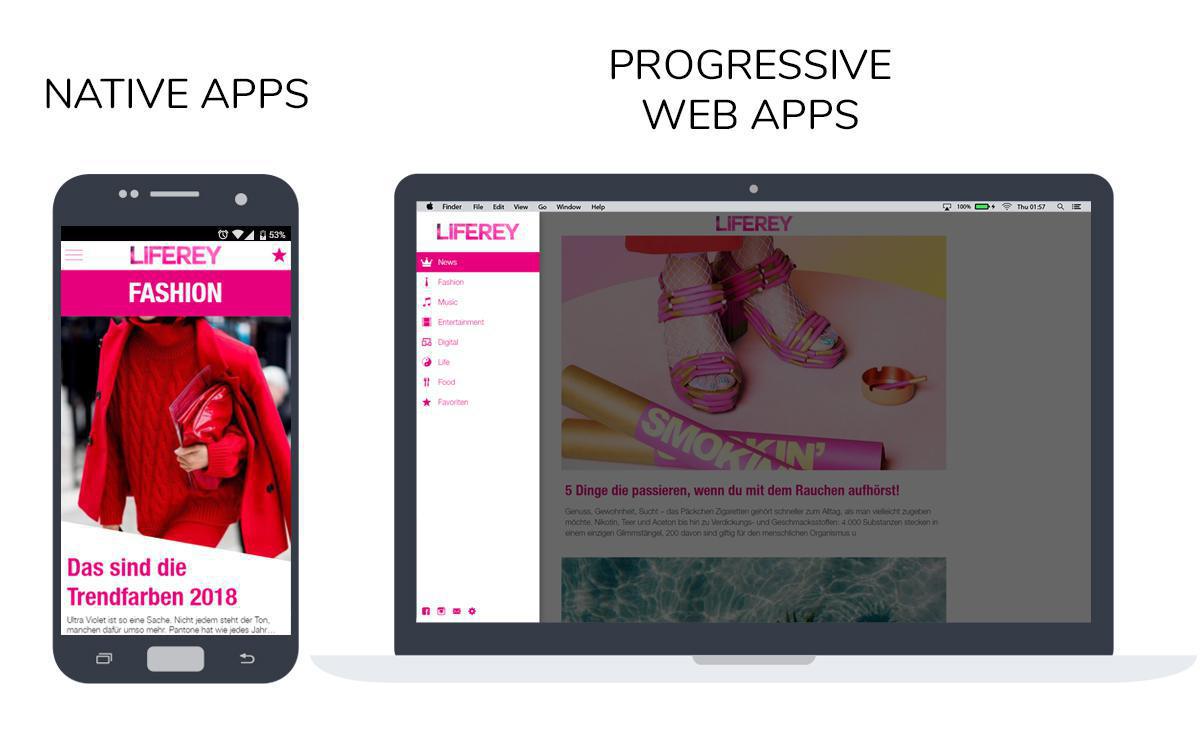 La versione nativa limita il pubblico per il semplice motivo che deve utilizzare uno dei due tipi standard di dispositivi mobile. Anche se la popolazione si sta restringendo, gli utenti Windows e Blackberry sono stati dimenticati e, cosa più importante, anche gli utenti desktop (una popolazione che è qui per restare) viene ignorata. Poiché le PWA vengono eseguite in un browser, avrai la certezza che il 100% delle persone che hanno accesso a questo strumento universale avranno l'opportunità di raggiungere i tuoi contenuti.