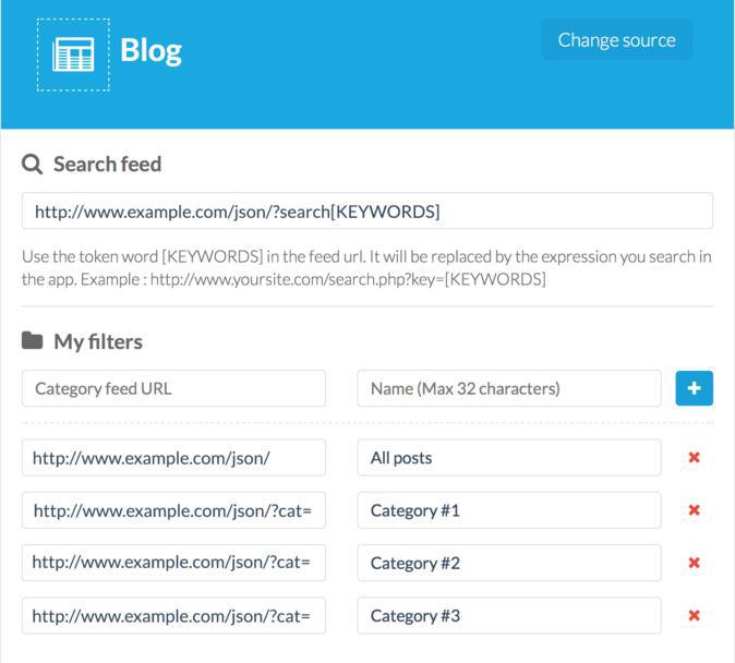 Se ad esempio hai un sito creato con Joomla, puoi utilizzare il connettore RSS. Questo ti impedirá peró di accedere ad alcune delle migliori caratteristiche della tua app come: commenti nei post, motore di ricerca di contenuti, pagina dei preferiti.