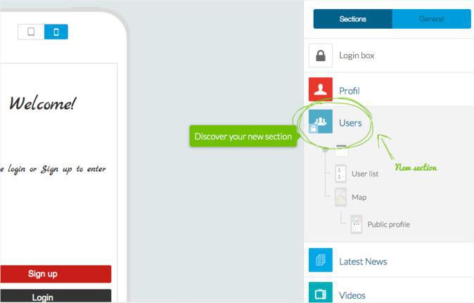 Una volta aggiunto vedrai comparire una nuova sezione nel menu della tua app. L’abbiamo denominata Utenti e sarà l’area dedicata alla tua community .
