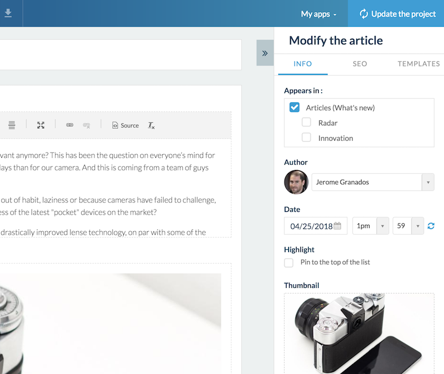 La riorganizzazione del Builder, con questa netta separazione tra gestione dei contenuti e gestione del design, ti consente di offrire una gestione ancora più fine agli utenti nel tuo team editoriale.