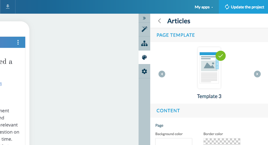 Builder> Contenuto - Struttura dell'app chiaramente visibile