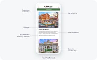 Il più recente è un nuovo modello per la sezione della mappa. Questo modello non solo rappresenta un nuovo modo di navigare tra la visualizzazione della mappa e quella dell'elenco delle località, ma è anche ricco di altre interessanti funzionalità.