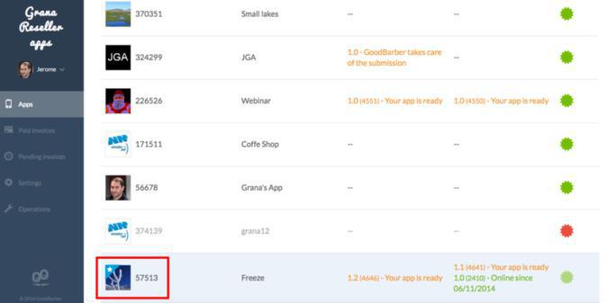 La prima cosa che vedrai nella pagina principale della tua dashboard reseller sono tutte le app della tua agenzia. Per ognuna potrai vedere lo stato di pubblicazione per Android e iOS. Da qui potrai creare nuove app, aggiungerne di già esistenti o eliminare app dal tuo account. Allo stesso tempo puoi trasferirne la proprietà o disattivare temporaneamente dei progetti (se dovessi ad esempio avere problemi di pagamento con alcuni clienti).