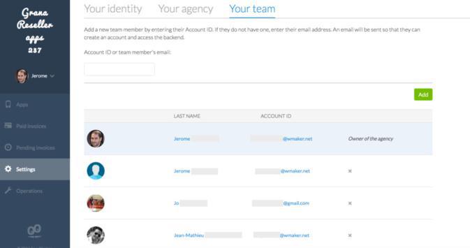 Se vuoi che i membri del tuo team accedano alla tua dashboard reseller puoi inviare loro un invito, non c'é alcun limite. Ricorda però che la dashboard reseller non é white label, il tuo logo è sempre ben visibile.
