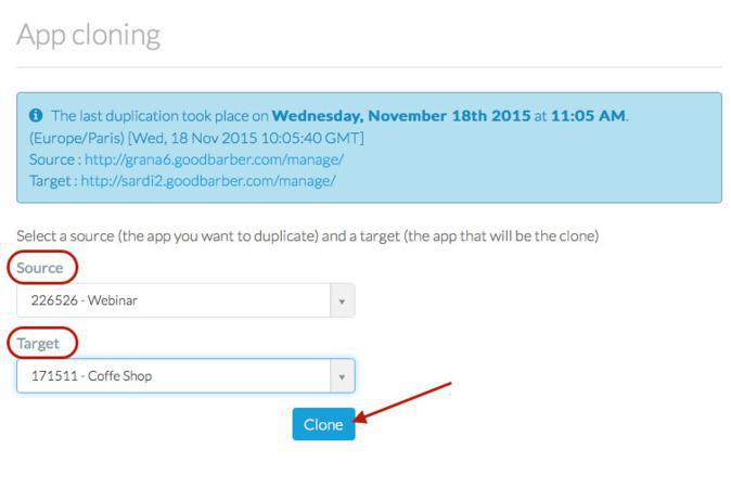 L'opzione per clonare applicazioni può essere attivata sotto espressa richiesta e ti permette di duplicare un'app intera. Questa funzionalità é un add-on disponibile esclusivamente con il piano reseller.