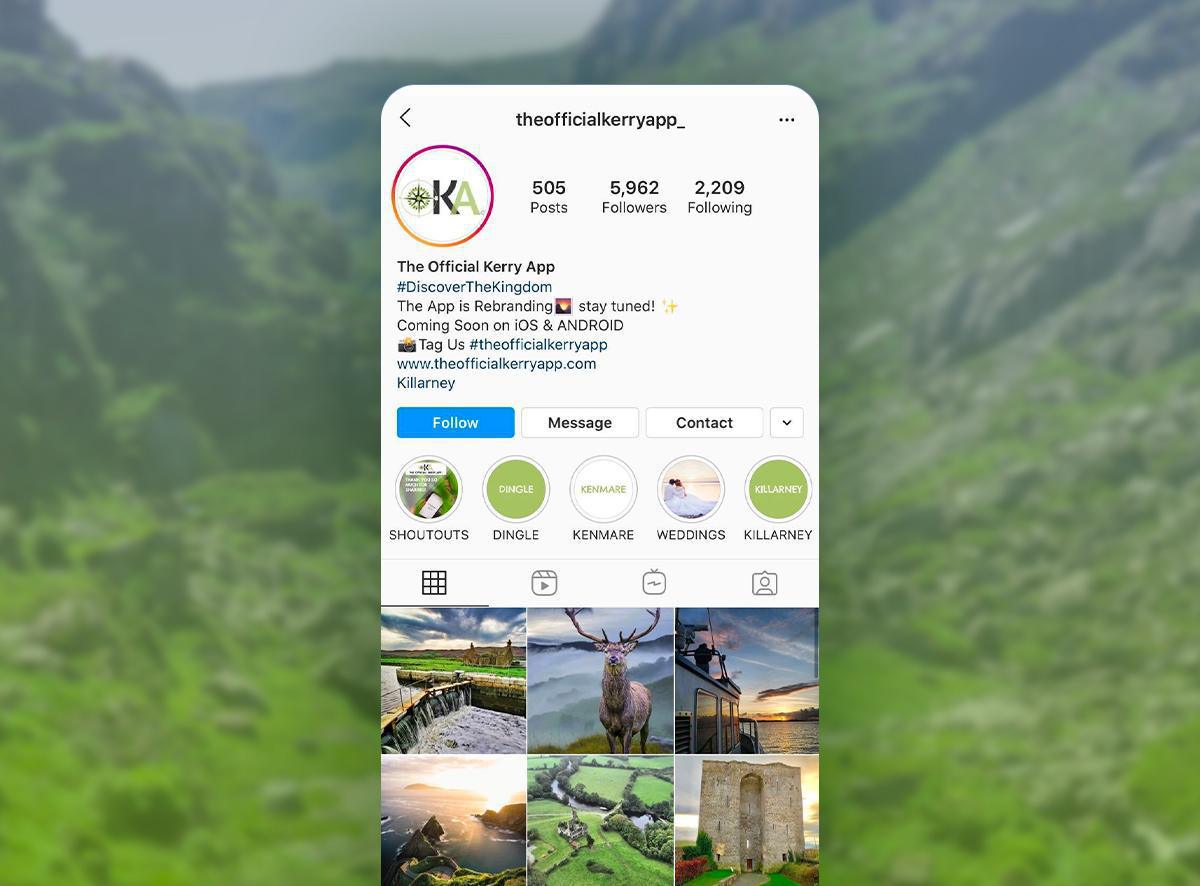 Insieme a uno straordinario account Instagram, The Official Killarney App © ha costruito una community online di oltre 10.000 utenti (tra download di app e follower su Instagram @theofficialkerryapp_). La sola app ufficiale di Killarney ha avuto oltre 150.000 visualizzazioni attraverso il sito Web, l'app iOS e Android.