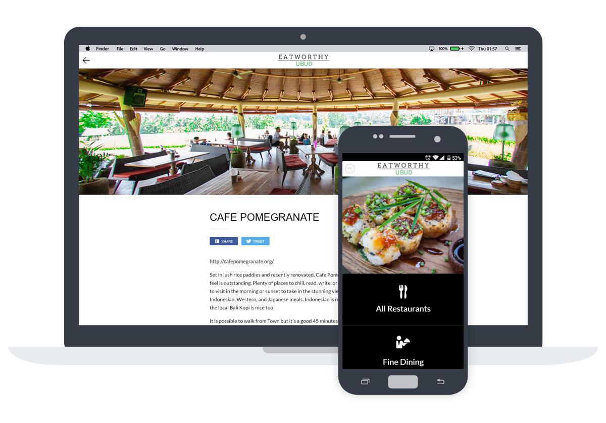 Eatworthy Ubud è un progetto ideato da un grande appassionato di gastronomia che ha voluto mettere in rilievo i migliori ristoranti di Ubud, in Indonesia. La particolarità di questa app è il modo in cui i ristoranti sono presentati e come questi vengono valutati dagli utenti, totalmente diverso dalla maggior parte delle app dello stesso genere. I criteri sono: "buono, cucina onesta, con rispetto per la tecnica, gli ingredienti, i produttori e i cuochi". A noi di GoodBarber piace!