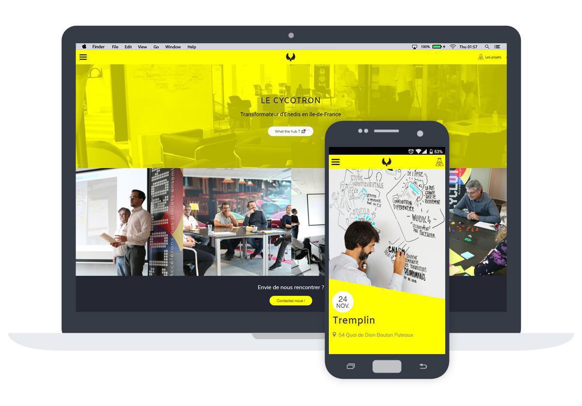 Ecco un buon esempio di applicazione per un'azienda. Cyclotron è un incubatore e acceleratore di progetti interni a Enedis. L'app serve come showcase e come agenda degli eventi organizzati.