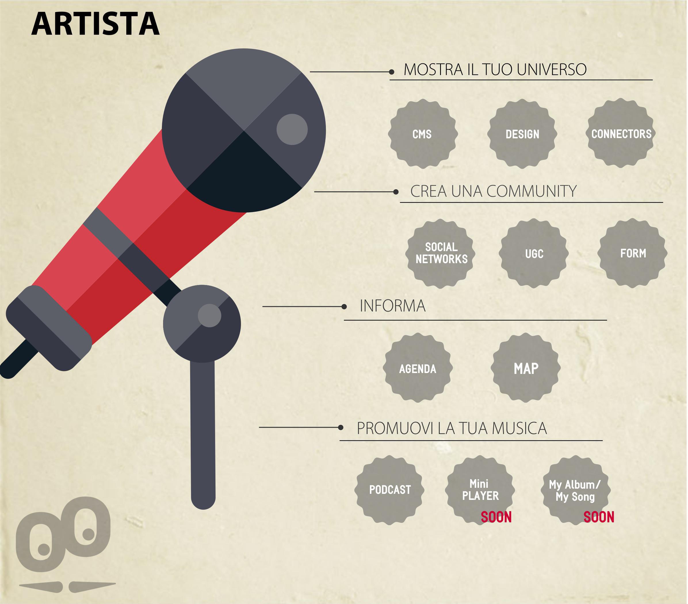 - Crea una comunità: essere e restare popolare è necessario per creare e mantenere la comunità. Per questo puoi usare i social network, ma anche altre caratteristiche come la sezione Invia che permette ai fan di condividere i contenuti con l'artista, o la sezione Modulo che permette l'organizzazione, ad esempio, di concorsi!