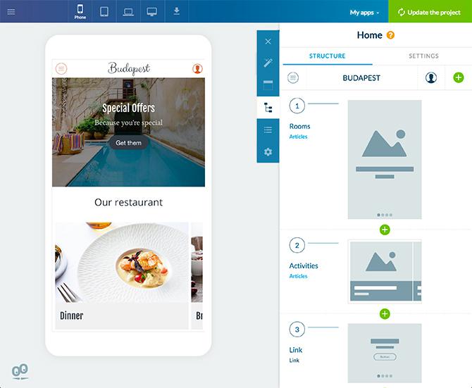 Adesso puoi creare la tua app da un nuovo tipo di menù che si chiama Builder. Alla base di questo nuovo back office c'è la chiarezza. Gran parte della schermata è dedicata all'anteprima dell'app e il punto di partenza è sempre la creazione per mobile.