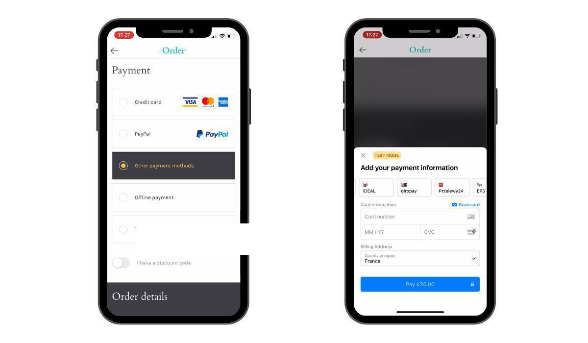 Pur offrendo già pagamenti con carta di credito, Paypal e un'opzione di pagamento offline, alcuni dei nostri clienti si trovano in Paesi che usano metodi di pagamento specifici come iDeal per i Paesi Bassi, Giropay in Germania e altri. Ora, grazie alla nostra ultima estensione, Stripe Extended, potete offrire iDeal, Giropay e altri 5 nuovi metodi di pagamento nella vostra app di eCommerce GoodBarber.