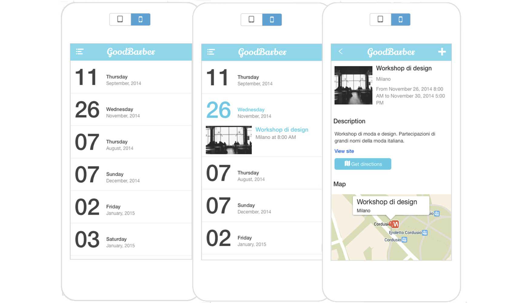 Ecco perchè con GoodBarber 3 abbiamo deciso di portare il design delle nostre sezioni “agenda” ad un altro livello. In questo articolo vi voglio presentare le principali novità che abbiamo introdotto sia per facilitare voi nella creazione di eventi spettacolari, che per rendere la sezione degli eventi nell’app molto più invitante per i vostri utenti.