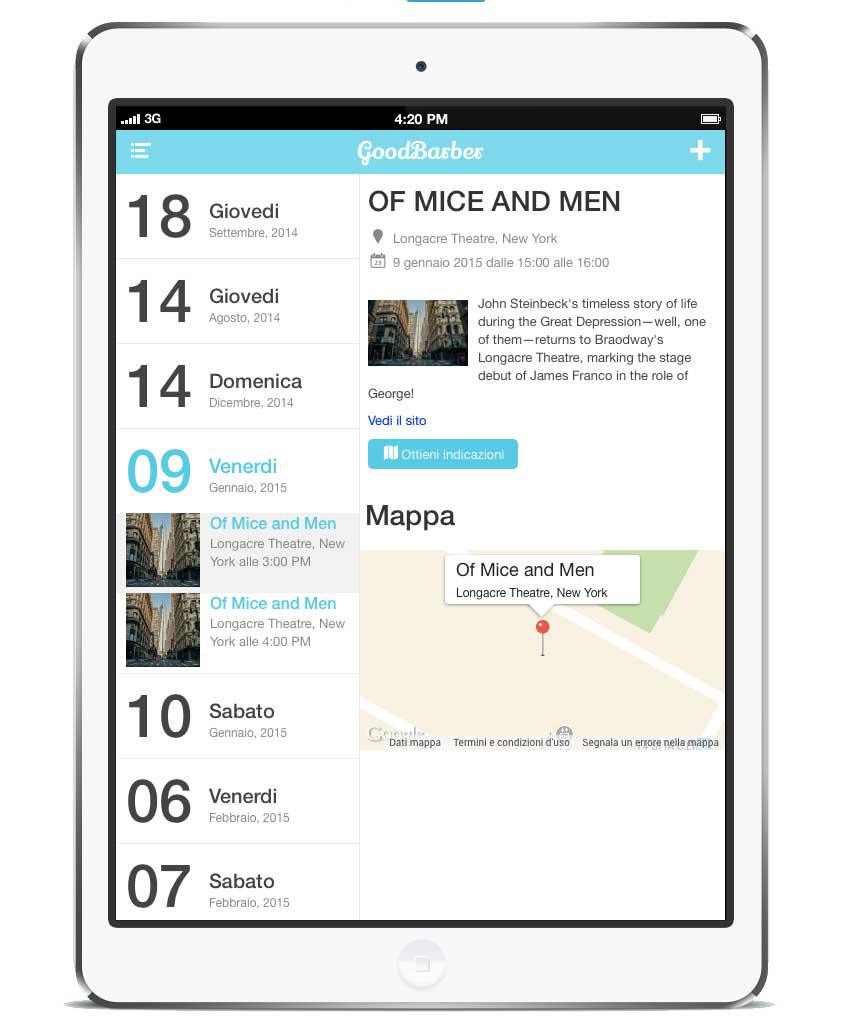 4. Il design è inoltre ottimizzato per ogni dispositivo! La versione iPad usa lo spazio maggiore per mostrare più informazioni sia nella modalità di visualizzazione landscape che quella portrait, nella stessa schermata potete vedere la data, la descrizione, l’immagine e la mappa.