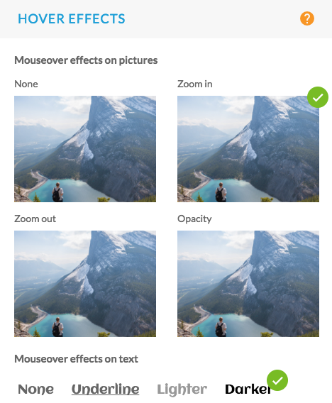 Hai infatti la possibilità di avere anche un effetto hover su alcuni elementi (immagini e link), passandoci semplicemente sopra col puntatore del mouse.