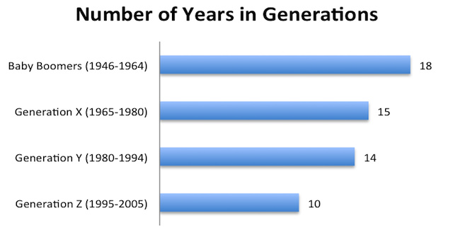 Un esempio di come diventa sempre più difficile segmentare è dato da questo grafico di Mashable: i gruppi di persone che si possono raggruppare sotto una singola generazione stanno diventando sempre più piccoli. Le persone si auto segmentano in gruppi così eterogenei che una comunicazione generale top-bottom non può più funzionare oggi.
