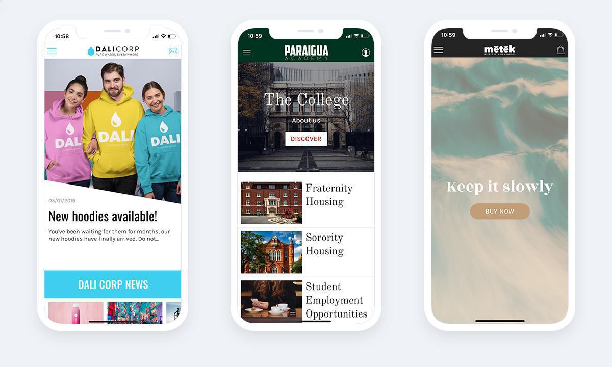 Il modello Grande, ancora più alto del Medio, offre una differenza importante rispetto ai suoi due fratelli minori: la possibilità di aggiungere una breve descrizione sotto il titolo o il logo della vostra app. Questa piccola novità ha in realtà un enorme potere che darà una scossa ai vostri design e all'esperienza che offrirete ai vostri clienti. In questo caso, non dimenticate che potete "sganciare" le intestazioni di ogni sezione per aggiungere testi diversi per ogni sezione, se necessario.