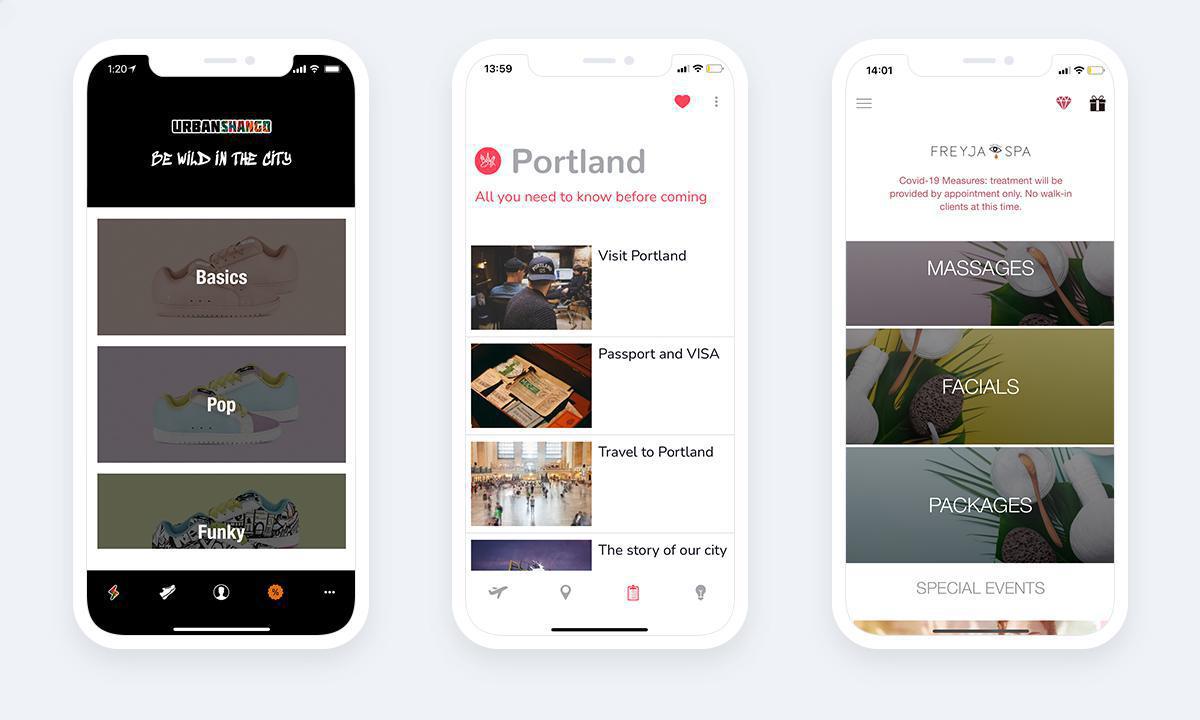 - Infine, Freyja Spa usa la sua app per comunicare con i clienti, per permettere loro di prenotare un trattamento e anche per massimizzare il programma di fidelizzazione. L'app è diventata lo strumento di comunicazione privilegiato tra i clienti e il salone. Il modello grande dell'intestazione è usato per mostrare informazioni importanti che non dovrebbero passare inosservate. Il testo cambia regolarmente in base alle esigenze del gestore. Qui, ad esempio, è riportata un'informazione importante sull'organizzazione del salone durante la pandemia di Covid-19.