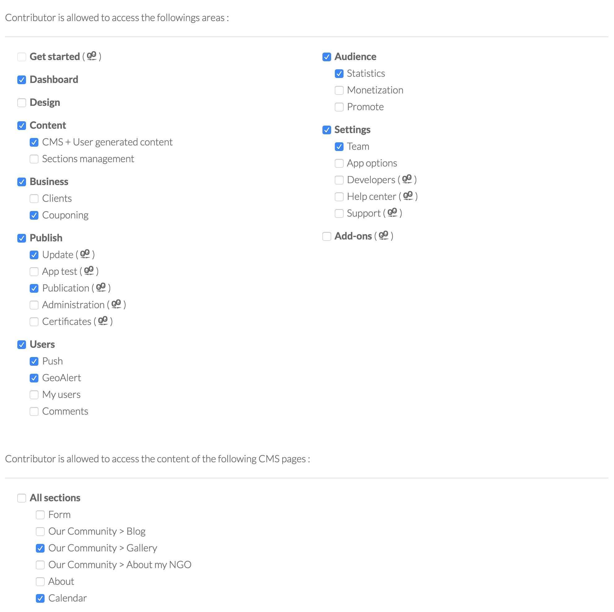 Con GoodBarber puoi gestire facilmente i diritti di accesso di tutti i tuoi diversi utenti (clienti e membri del team) e adattarli alla tua strategia.