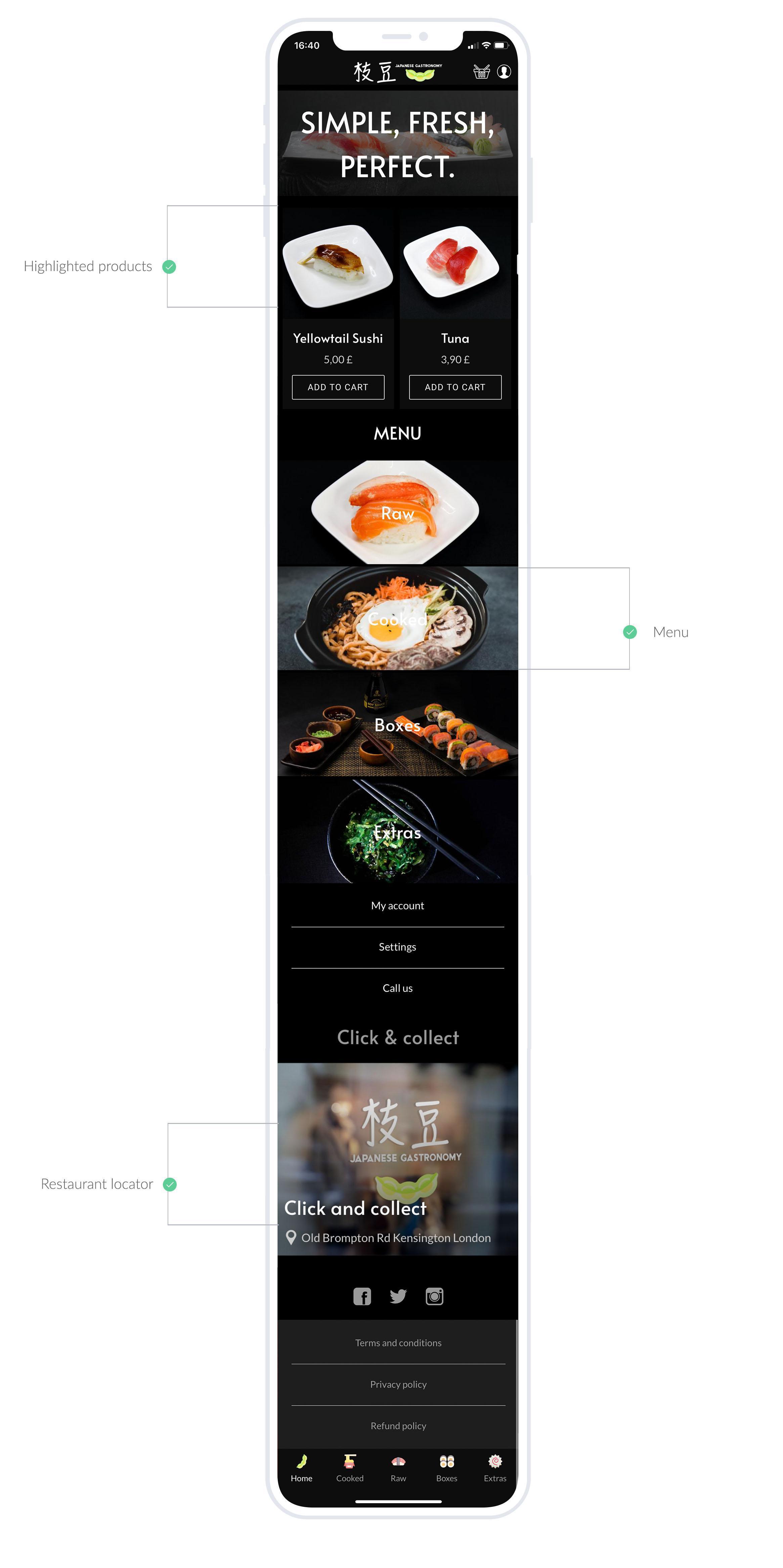 I proprietari dell'Edamame non volevano offrire un servizio di consegna per evitare di dover assumere personale per gestire questo processo. Così hanno scelto di offrire un servizio "Click and Collect": semplicemente, i clienti ordinano il loro pasto sull'app e ritirano il loro ordine direttamente al ristorante. In questo modo, i ristoratori devono solo preparare gli ordini e aspettare che i clienti vengano a ritirarli. Dato che gli ordini vengono fatti direttamente sull'app piuttosto che al telefono, non c'è un carico di lavoro aggiuntivo per il personale del ristorante. Un bonus extra!