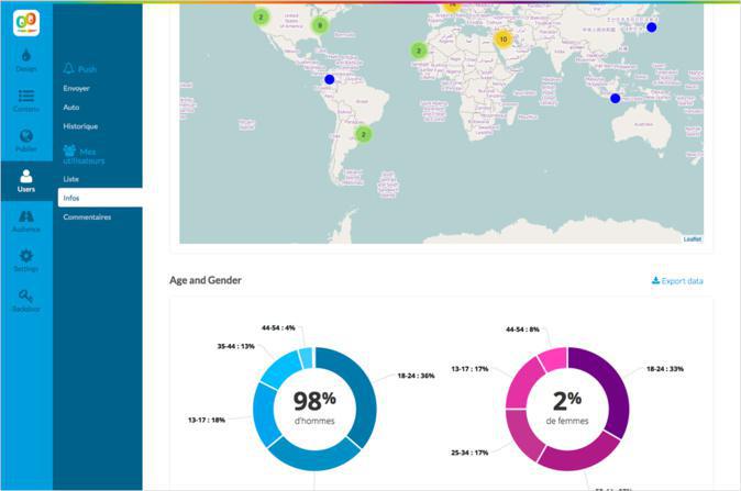 Sappiamo per certo che molti di voi sono interessati a monitorare quanto e come gli utenti utilizzano la vostra app. Proprio per soddisfare questa vostra curiosità, GoodBarber vi offre tantissime statistiche, che troverete direttamente nel vostro back office. Per coloro che vogliono giocare con i dati e fare le proprie analisi, ora è possibile anche esportarli in formato XLS.