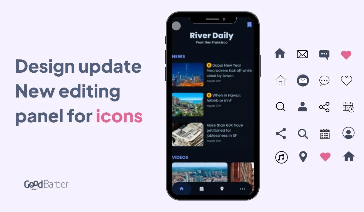Abbiamo recentemente rilasciato nuove icone Material per aggiornare il design delle vostre app. Per portare avanti questo aggiornamento del design, ora è possibile personalizzare alcune icone direttamente dal pannello di modifica dell'app senza dover modificare il JSON, un'estensione avanzata della funzione.