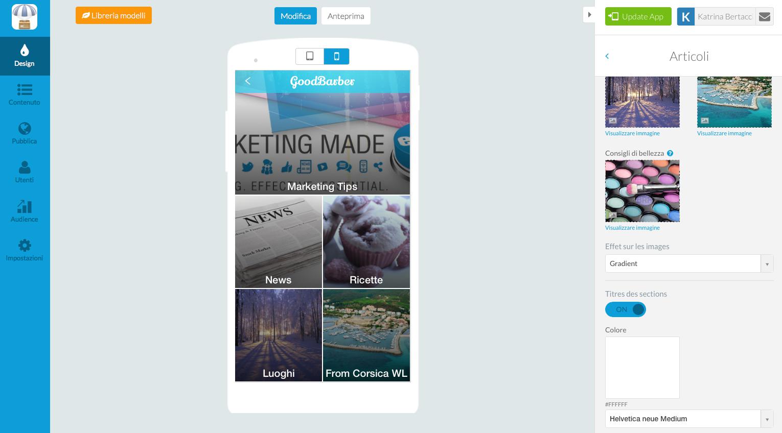 A seconda del modello che scegliete, potrete poi personalizzare ulteriormente il design, utilizzando le diverse impostazioni contestuali.